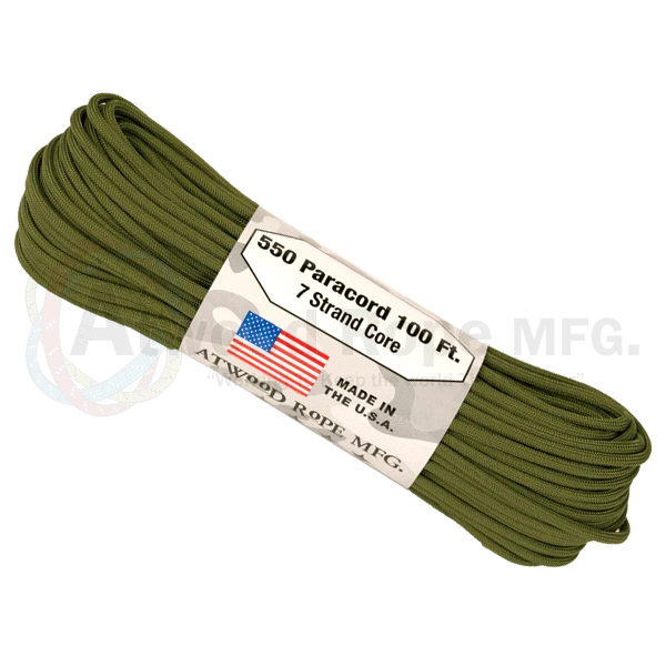 The renowned Atwood Rope Company 550 Paracord Olive Drab with 7 Strands you know you can trust, with a breaking strain of 550 lbs (250kg), this is the real deal made for the U.S military.