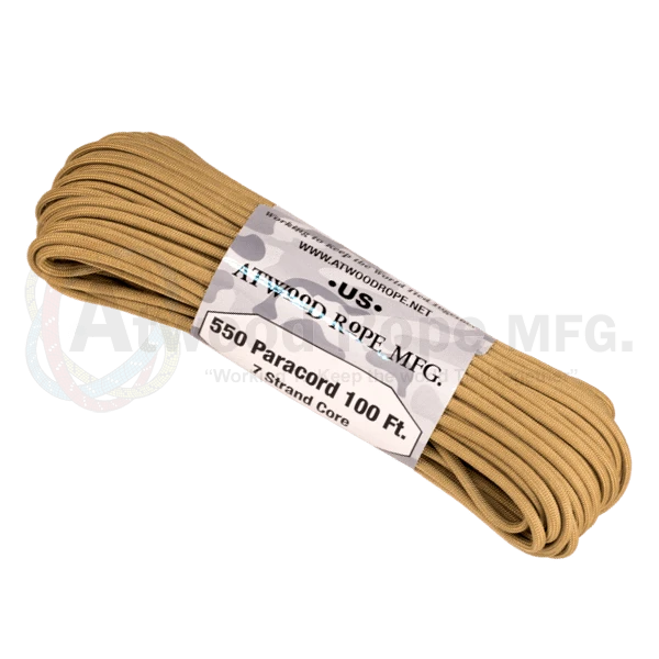 The renowned Atwood Rope Company 550 Paracord Tan with 7 Strands you know you can trust, with a breaking strain of 550 lbs (250kg), this is the real deal made for the U.S military.