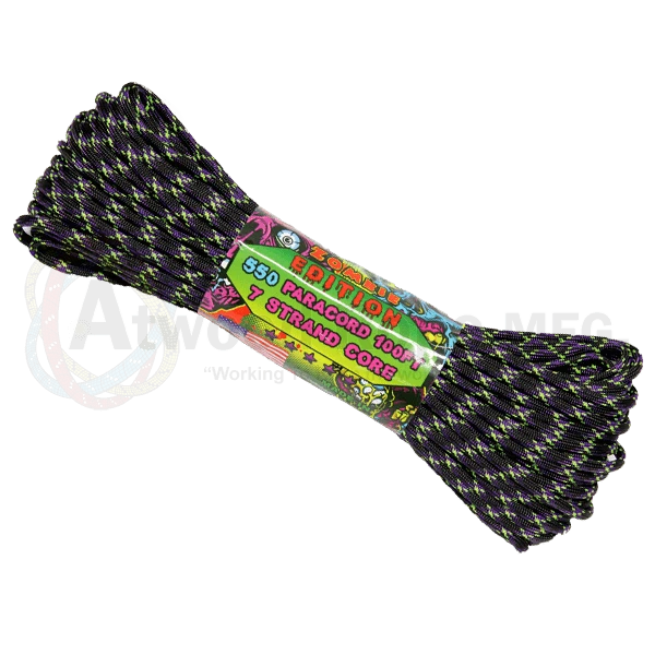 The renowned Atwood Rope Company 550 Paracord Zombie Undead with 7 Strands you know you can trust, with a breaking strain of 550 lbs (250kg), this is the real deal made for the U.S military.