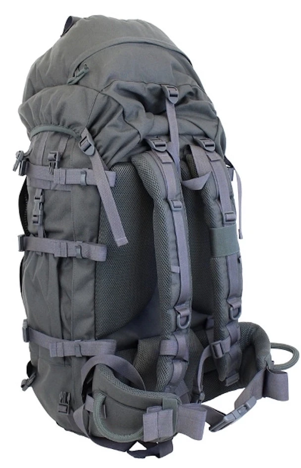 Most of the pack is made from a 1000 Denier Polyester coated with a Silicone PU elastomer, this gives it excellent anti-tear strength and flex resistance making the Sabre 75 the ability to endure anything your adventure can throw at it. With an application of a fluorocarbon durable water repellent it also improves the water resistance of the fabric.