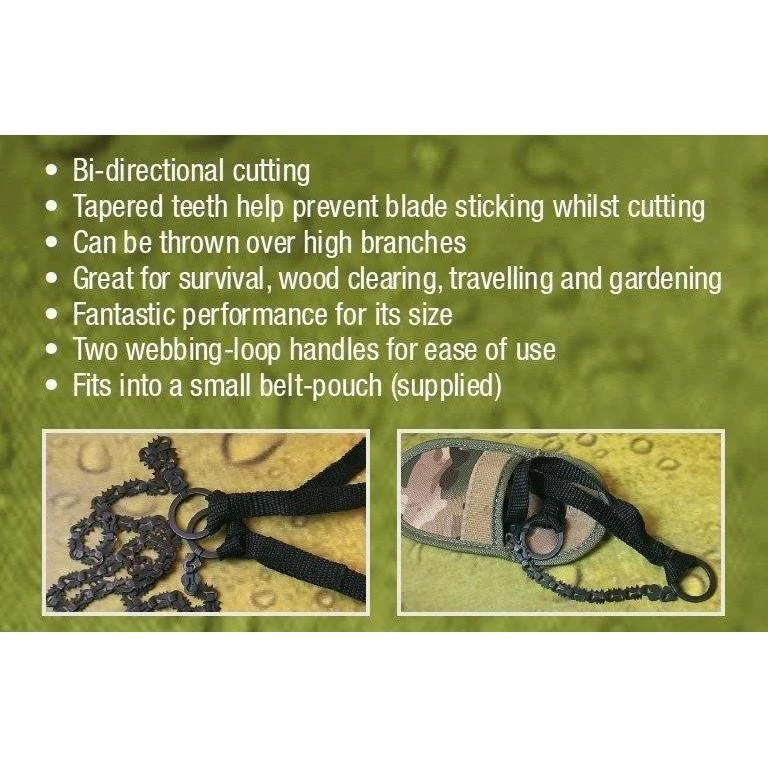 This tough pocket chain saw will cut through 8cm (3″) branch with minimum effort.