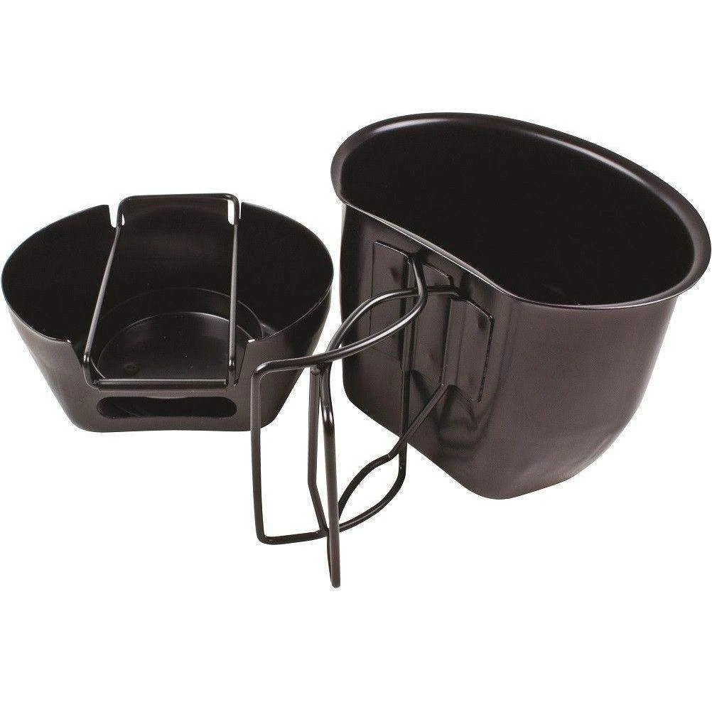 An integral folding arm allows the cup to fit securely over a fuel crucible with a capacity for 40 ml of gel fuel or 2 hexamine fuel blocks.