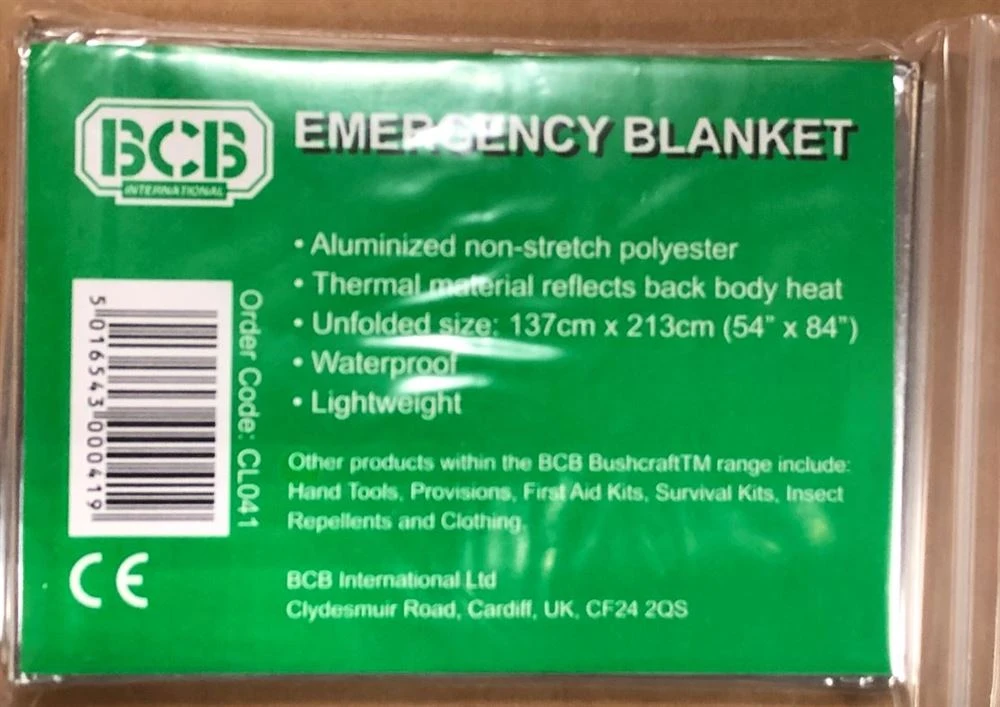 The BCB Emergency Foil Hypothermia Blanket is essential kit for the outdoors when hiking, camping, also known as space blankets.