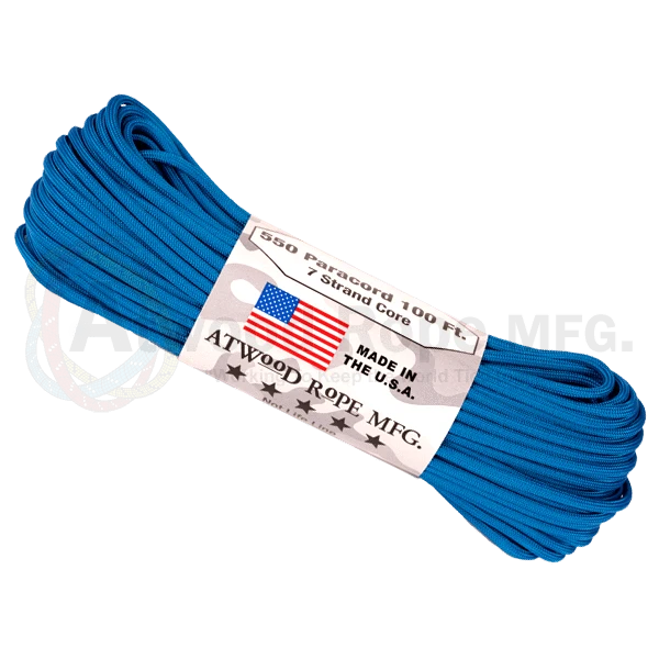 The renowned Atwood Rope Company 550 Paracord Blue with 7 Strands you know you can trust, with a breaking strain of 550 lbs (250kg), this is the real deal made for the U.S military.