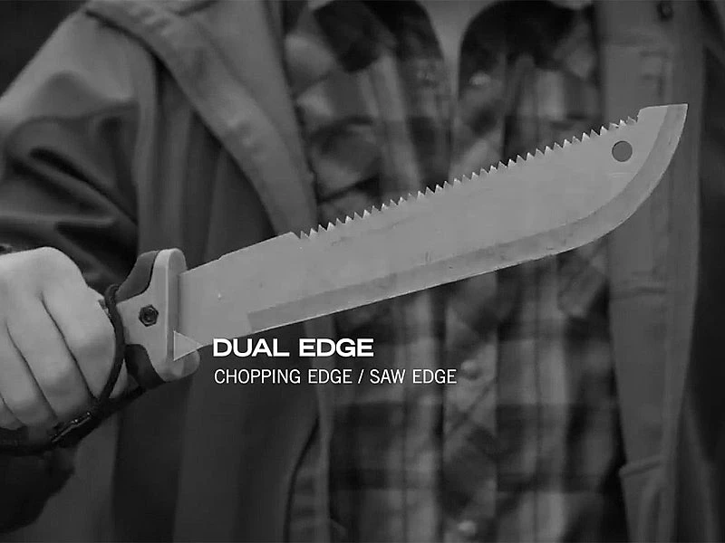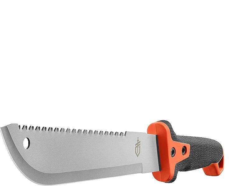 The Gerber Compact Clearpath Machete is ideal for both gardening and outdoor uses and is designed with two edges; a curved fine edge for cutting & chopping, and a serrated edge for sawing. This is a two-in-one machete that is perfect for clearing brush, vines, branches and much more.