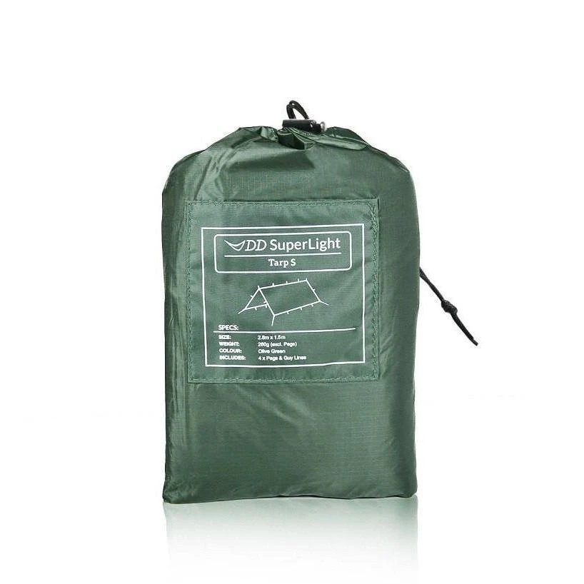 DD Small Tarp Olive Green 2.8m x 1.5m is ultralight with 16 tough reinforced side attachment points plus 3 tough centre attachment points (total of 19) making it extremely versatile.