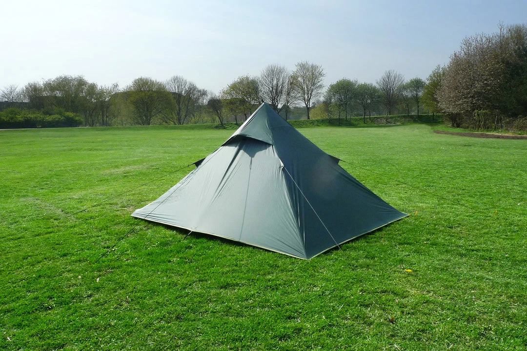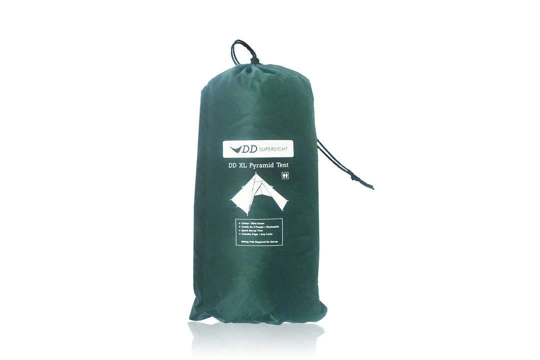 The DD SuperLight -XL Pyramid Tent is designed to be used in conjunction with either the XK Pyramid Mesh Tent and the Solo Mesh Tent (both sold separately) to provide insect proofing but can be used by itself for a spacious waterproof shelter.