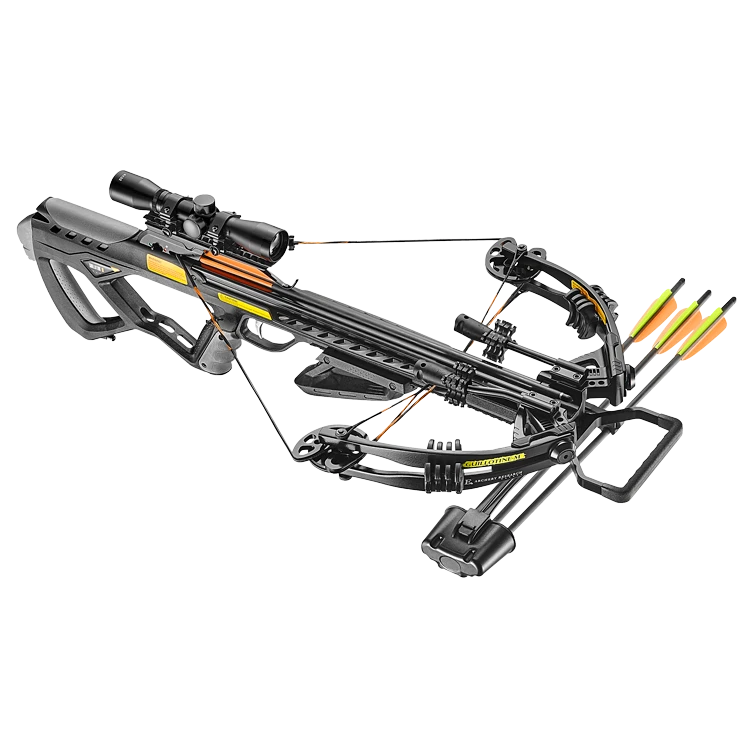 The EK Archery Guillotine-M+ Compound Crossbow is the smaller brother of the Guillotine-X, but the upgraded version of the Guillotine M. The M+ provides the same high accuracy and power in a lighter nimble package.