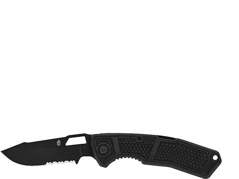 The Gerber Order is a folding knife with a semi-serrated blade made from 420HC steel. This intriguing knife has a slightly arced design which aids in its precision and cutting power. The blade itself has a black ceramic coating for protecting its surface and features a dedicated thumbhole for easy opening.