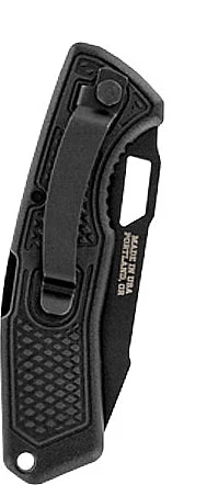 The handle has a rubber diamond texture for an improved grip and features a lock-back mechanism for better blade security. Includes a lanyard hole and an integrated pocket clip for carrying.