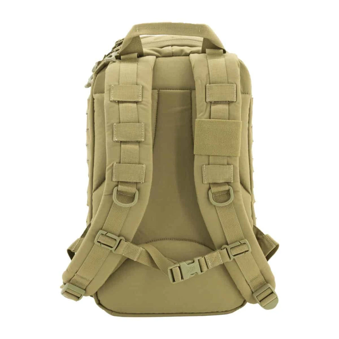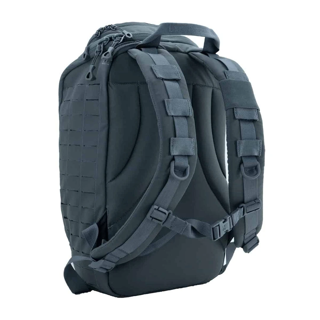 The MODI 15 design has a zippered soft lined top pocket and one main compartment that includes two way zip openings on both. Inside there is a laptop/hydration sleeve with an organiser and zipped pockets. A zippered document pocket is included behind the back panel. The shoulder straps can also be concealed, and the pack attached to compatible body armour systems.