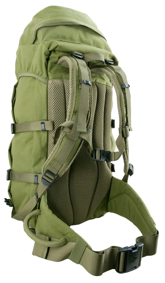 Most of the pack is made from a 1000 Denier Polyester coated with a Silicone PU elastomer, this gives it excellent anti-tear strength and flex resistance making the Sabre 45 the ability to endure anything your adventure can throw at it. With an application of a fluorocarbon durable water repellent it also improves the water resistance of the fabric.