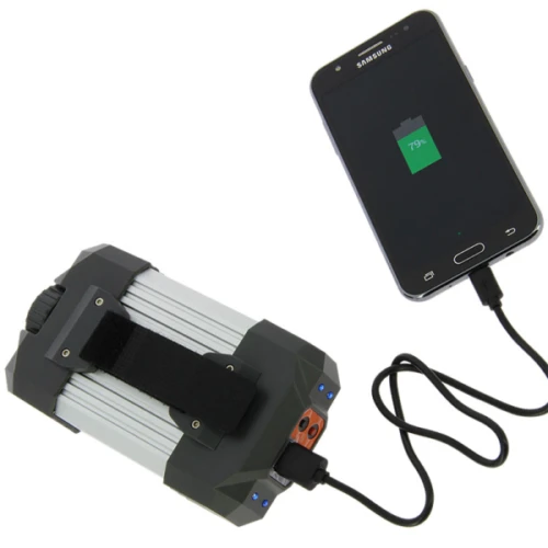 The powerful 10400mAh powerbank allows you to charge your smartphone up to 5 times and the light adjustable floodlight function lights up using 21 LEDs and dims to 6 LEDs when required using a dimmer switch
