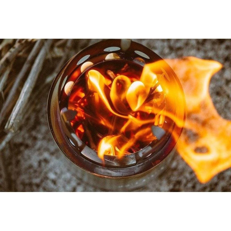 An angled cooking ring lip increases efficiency directing heat towards your pot minimizing heat loss, also as a windshield while allowing oxygen to flow inwards.